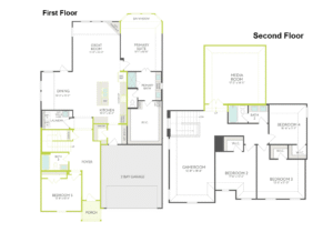 The Lillian offers expansive living with 5 bedrooms, 3 baths, and a luxury kitchen that anchors the open-concept design. Enjoy a media room, primary bay window, 8′ doors, open rails on both floors, and a covered patio with gas to the patio—creating a seamless blend of comfort and elevated everyday living.