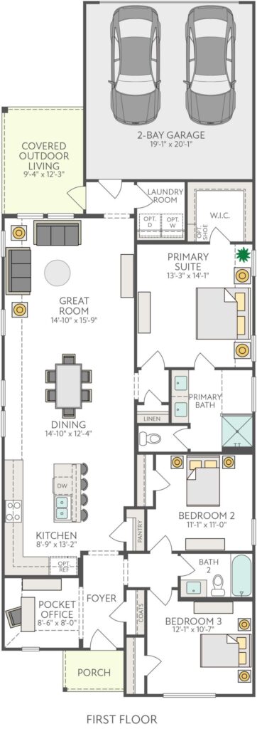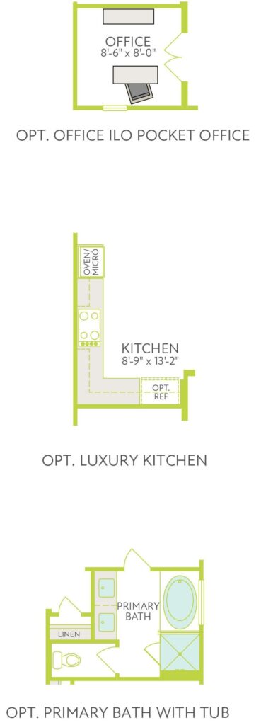 The Chaise plan offers 3 bedrooms, 2 baths, and 1,606 sq ft of well-designed living space with a 2-car garage. It features a luxury kitchen, 8′ interior doors, and an optional shower in place of the tub at Bath 2. This home blends comfort and flexibility in the Carriage Collection at Painted Tree.What youll love about this plan:Open concept home designofficeluxury kitchenCovered outdoor living2 Bay GarageLivingSmart features