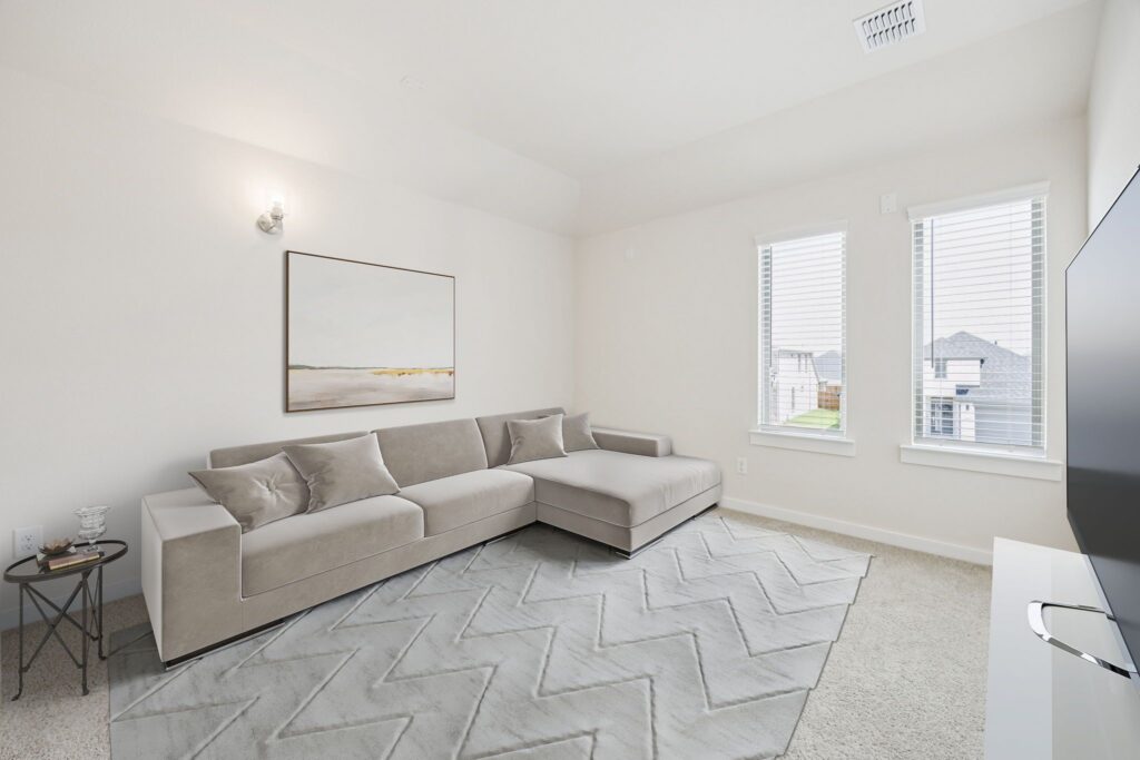 Spacious and superior, the Claret boasts everything you could want in a home and more. The four-bedroom design is sure to be the go-to home for holiday dinners with a family room large enough to provide ample seating. Your guests will be impressed by the spectacular gourmet kitchen and dining area. Entertain at the center island so everyone can mingle. Direct guests upstairs to bound about in the game room or enjoy movies in the media room. A home office, cordial primary suite, and covered patio add to the allure.